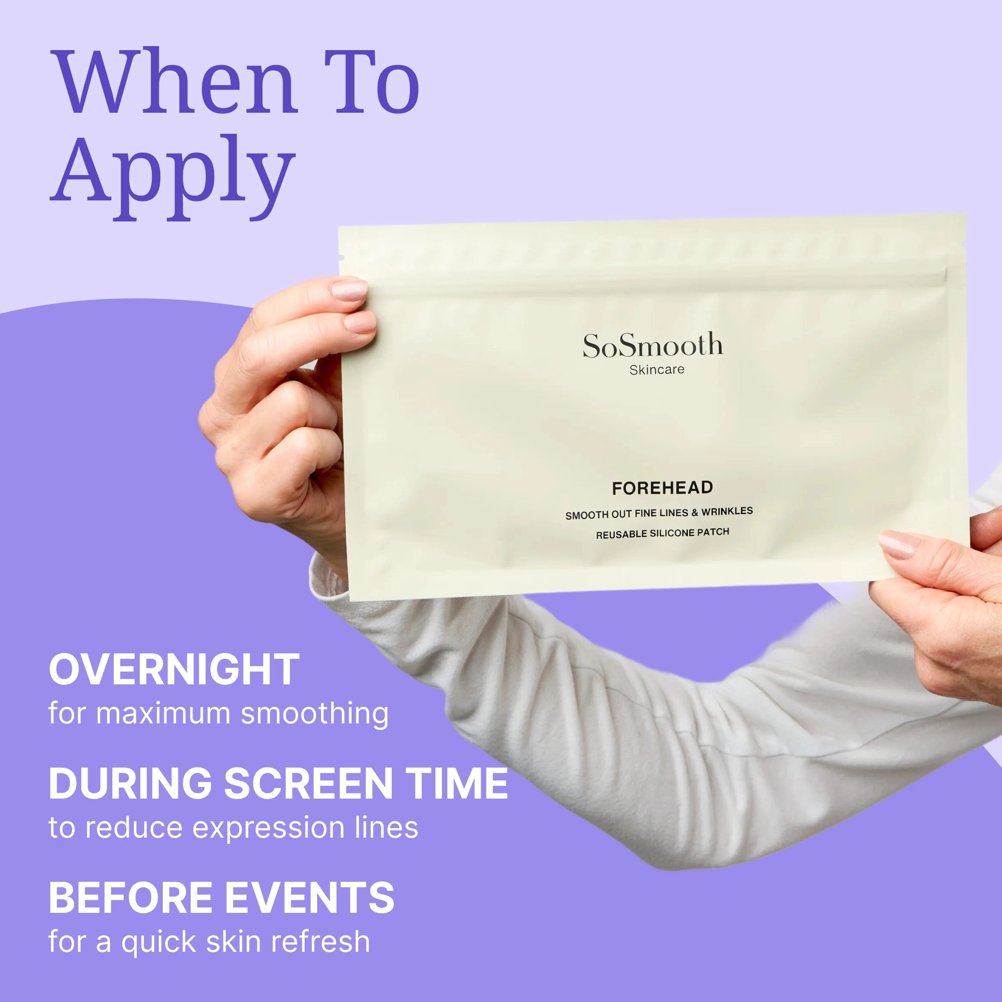 SoSmooth™ patches create a balanced microclimate that deeply hydrates and visibly smooths wrinkles. The occlusive barrier locks in moisture, plumping fine lines, while gentle compression softens existing wrinkles and helps prevent new ones. Enjoy a non-invasive path to smoother, youthful-looking skin.